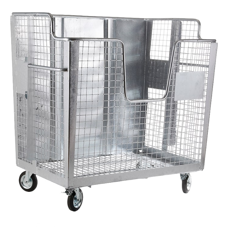 Les conteneurs sont légers, faciles à manipuler, conçus principalement pour les zones de stockage des supermarchés, des halls de production ou des parcs de collecte. Ils sont principalement utilisés pour la collecte des déchets monospécifiques encombrants et légers (cartons, cartons, plastiques, films…). Fabriqué en matériau galvanisé.